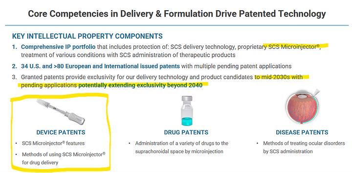 We will circle back to this several times, but the core value proposition of CLSD-technology is, that they can deliver drug into the eye without poking a needle into your eyeball.